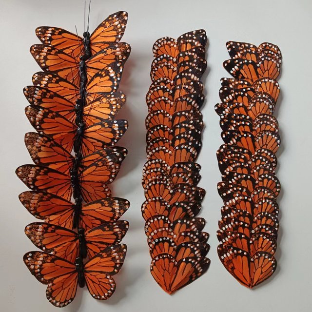 ขนนกเทียมผีเสื้อพระมหากษัตริย์ผีเสื้อสำหรับตกแต่งงานแต่งงานตกแต่งฮาโลวีนสต็อกพร้อมสต็อก7.5เซนติเมตรกว้าง3"